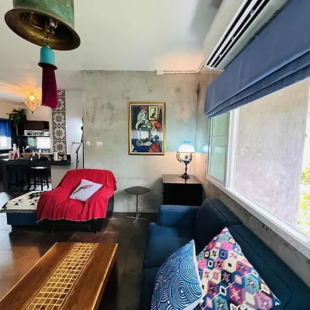 Gasten kunnen hun eigen maaltijden bereiden in een ingerichte kitchenette van deze villa. Green Gallery biedt Israëlische delicatessen op 1 km verderop.